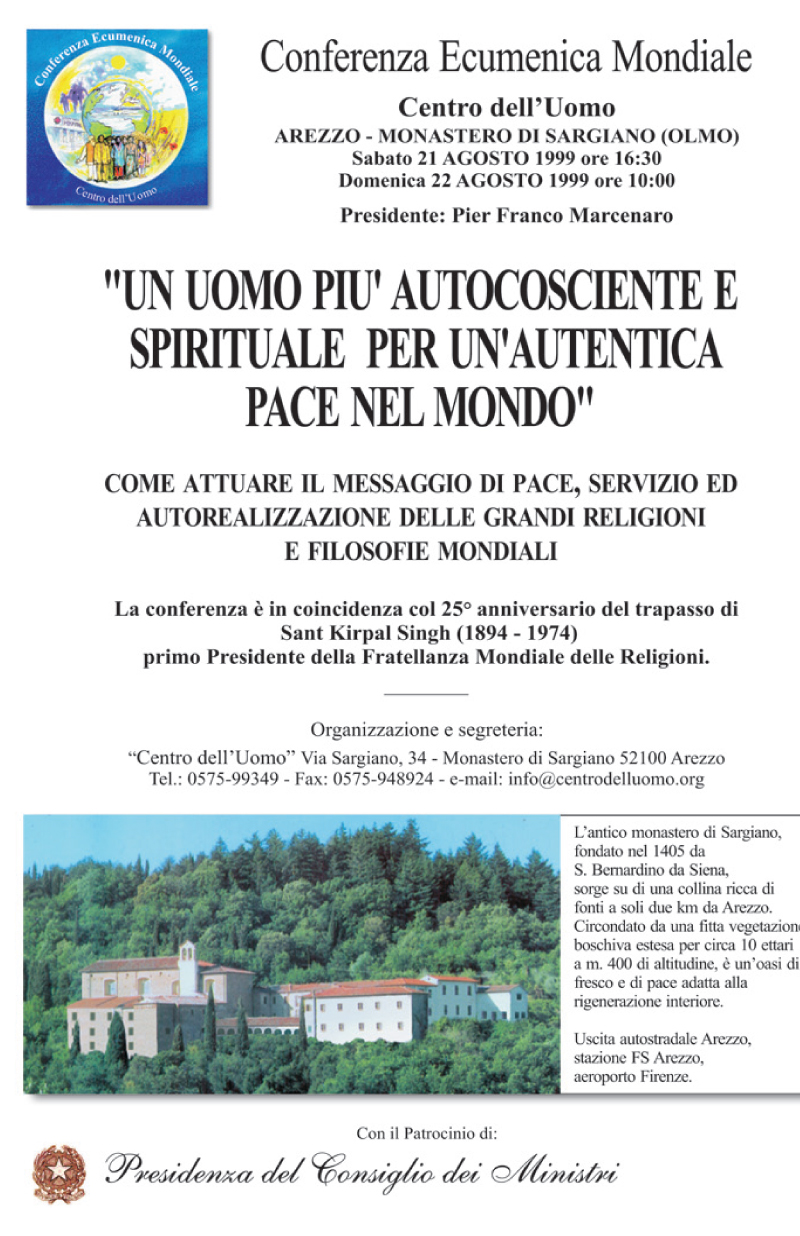 La prima Conferenza Ecumenica Mondiale per la Pace e la Prosperità dei Popoli, patrocinata dalla Presidenza del Consiglio dei Ministri e dal Ministero degli Affari Esteri, ha avuto luogo presso lo storico Monastero di Sargiano sotto la Presidenza di Pier Franco Marcenaro.
