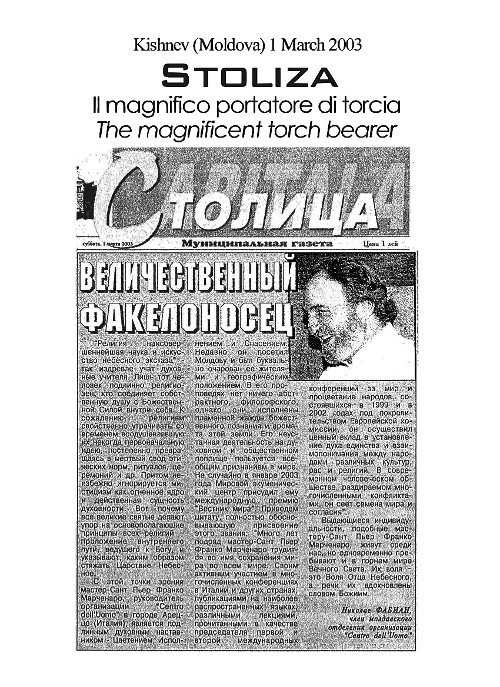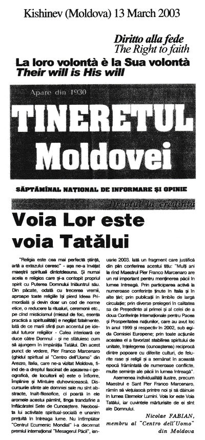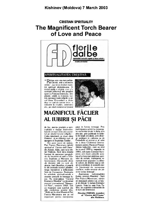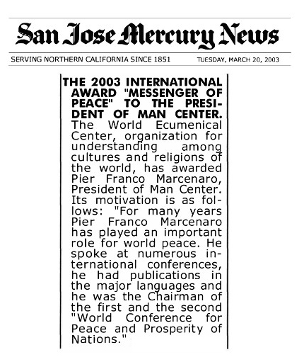 Nei giorni 29 e 30 Giugno 2002 si è tenuta presso il Monastero di Sargiano (AR) la II Conferenza Mondiale per la Pace e la Prosperità dei Popoli, organizzata dal Centro dell'Uomo e dal Centro Ecumenico Mondiale (oggi Centro Interreligioso Mondiale), con il Patrocinio della Commissione Europea.