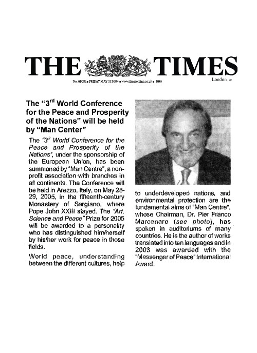 La via verso la Pace attraverso il colloquio fra le culture e le religioni, l'impegno contro l'emarginazione, la salvaguardia e la valorizzazione dell'ambiente per uno sviluppo sostenibile e la rinascita dei valori umani, sono state le tematiche della "III Conferenza Mondiale per la Pace e la Prosperità dei Popoli" che ha avuto luogo ad Arezzo, nello storico Monastero di Sargiano, dal 4 al 11 Giugno 2005 col Patrocinio delle Nazioni Unite e della Commissione Europea.