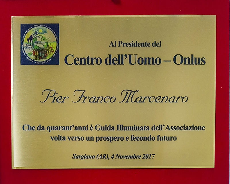 Successivamente, a suggellare tali parole, ha consegnato al Presidente del Centro dell'Uomo, Pier Franco Marcenaro, la targa commemorativa del Trentennale.