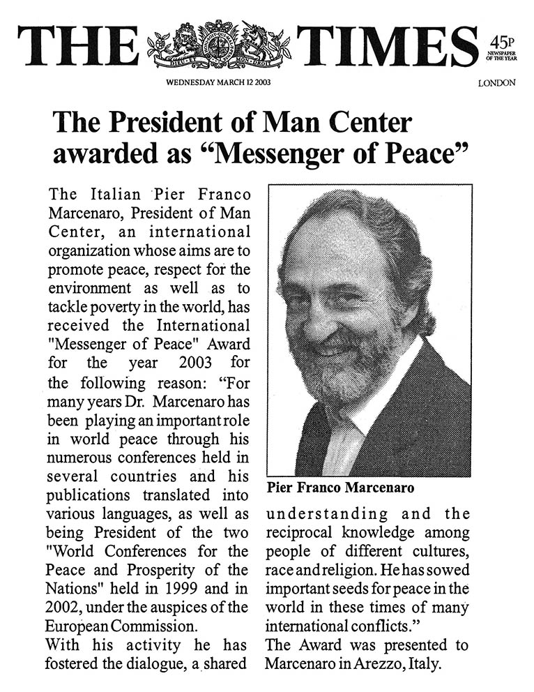 La prima Conferenza Ecumenica Mondiale per la Pace e la Prosperità dei Popoli, patrocinata dalla Presidenza del Consiglio dei Ministri e dal Ministero degli Affari Esteri, ha avuto luogo presso lo storico Monastero di Sargiano sotto la Presidenza di Pier Franco Marcenaro.