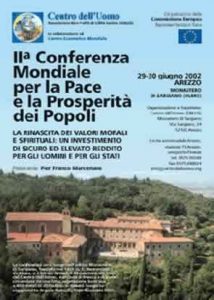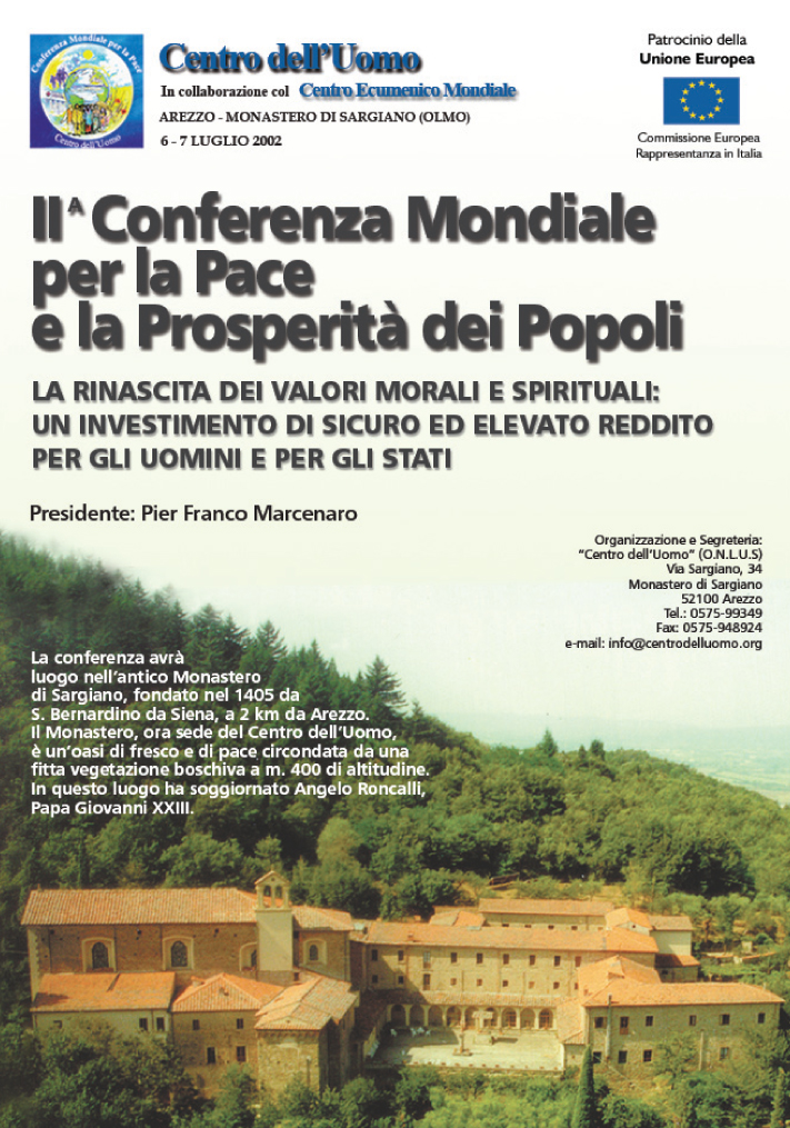 Nei giorni 29 e 30 Giugno 2002 si è tenuta presso il Monastero di Sargiano (AR) la II Conferenza Mondiale per la Pace e la Prosperità dei Popoli, organizzata dal Centro dell'Uomo e dal Centro Ecumenico Mondiale (oggi Centro Interreligioso Mondiale), con il Patrocinio della Commissione Europea.